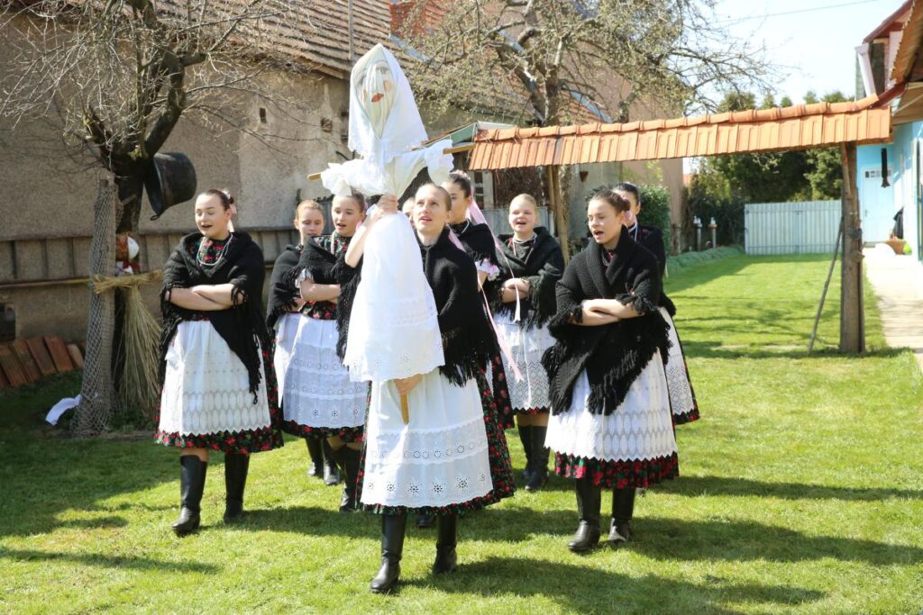 - Zničenie symbolu zimy: Keď sprievod dorazí k rieke alebo potoku, Morenu vyzlečú z kroja, zapália ju a hodia do vody. Ak v obci nie je potok, figurína sa symbolicky zakope alebo spáli na hranici.